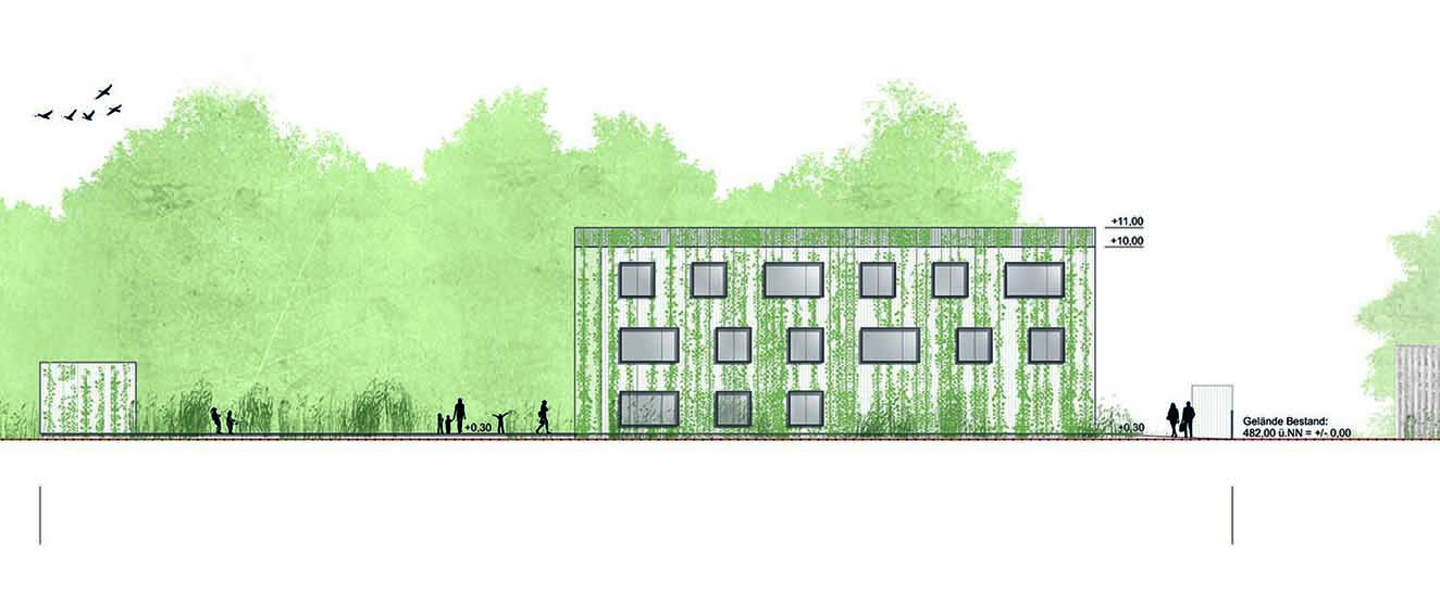 Mit der Gestaltung von Gebäude und Freiraum soll ein attraktiver, einladender, einprägsamer und unverwechselbarer Ort geschaffen werden, der Naturerfahrungen unterstützt und an dem die vielfältigen Facetten intelligenter Nutzung natürlicher Ressourcen durch den Menschen zum Ausdruck gebracht werden können.