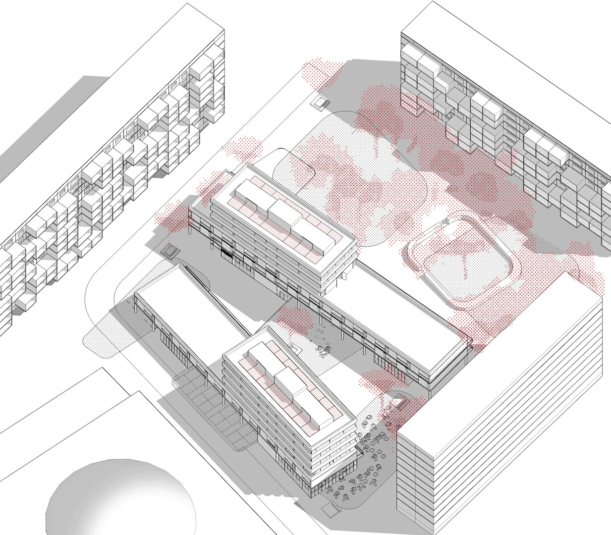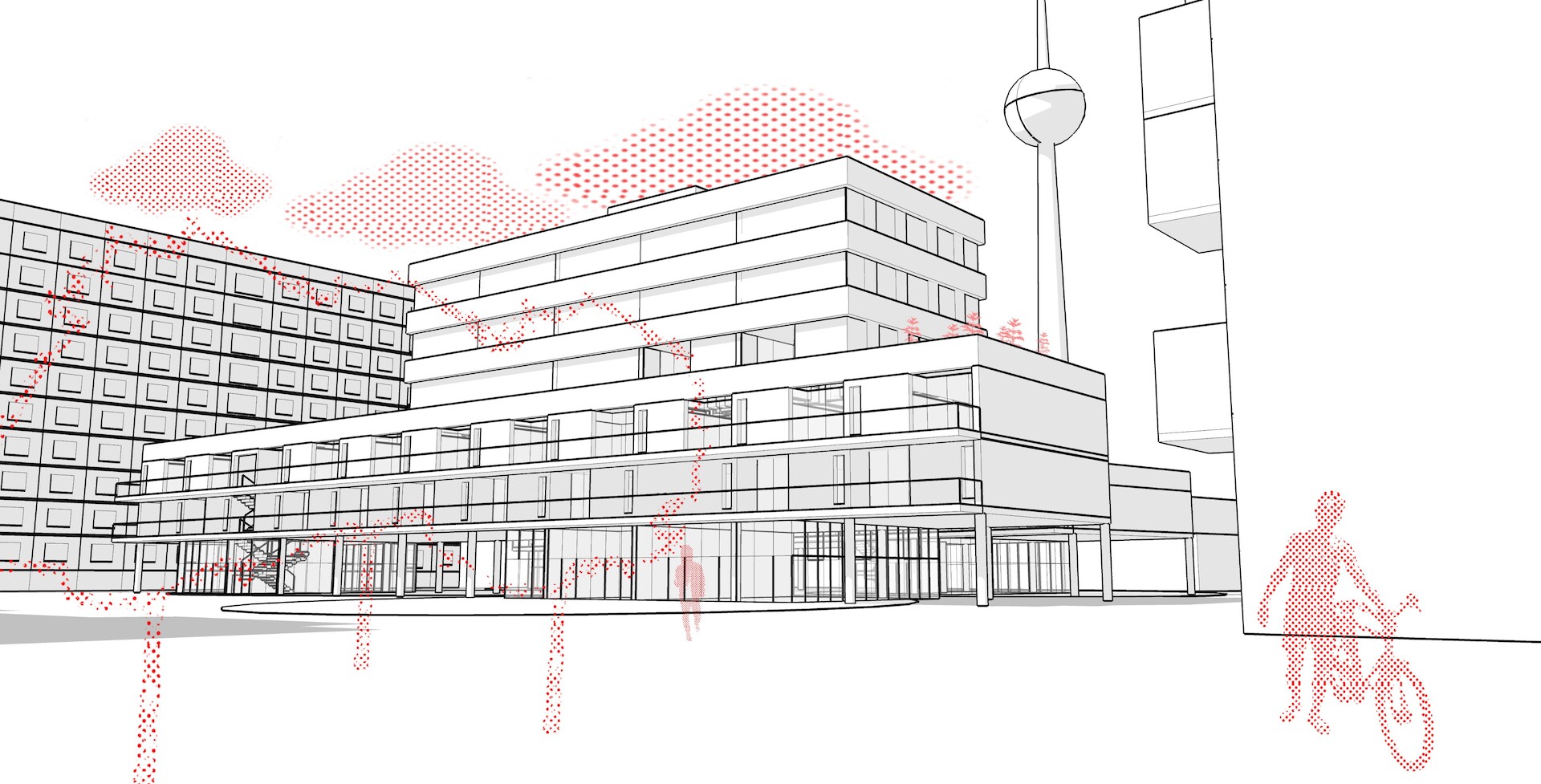 Pour explorer les potentiels de la densification et qualification urbanistique des Siedlungen modernistes de la RDA, ont été développé, à l’exemple d’un îlot au centre-ville de Berlin, des prototypes pour des immeubles d’habitation, des modules d’extension et des éléments paysagers.