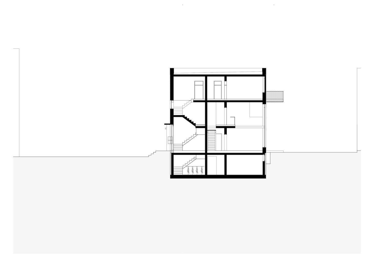 Pour le groupement d‘autopromotion composé de quatre jeunes familles, il s'agissait de répartir équitablement les différentes qualités des différents emplacements dans le bâtiment. De plus, les quatre appartements de taille similaire devaient être logés dans les trois étages prévus par le plan d'urbanisme.