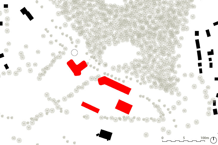 2.460 m² (Hôtel de ville), 2.300 m² (Cour de construction)