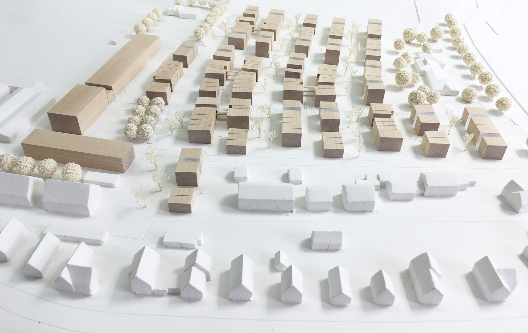 Leitidee des Entwurfskonzepts ist es, eine kompakte Siedlungsstruktur zu schaffen, die nicht nur Landschaftsreserven schont und Erschließungskosten optimiert, sondern mit der baulichen Dichte auch eine atmosphärische Verdichtung herstellt: Der öffentliche und halböffentliche Raum, insbesondere die Wohngassen, über die beidseitig die Hauszeilen erschlossen werden, sind als Orte der Begegnung und informellen Kommunikation gedacht, die das nachbarschaftliche Miteinander unterstützen.
