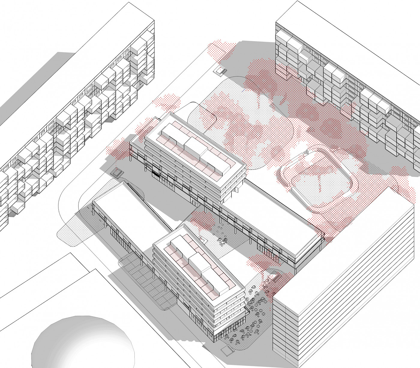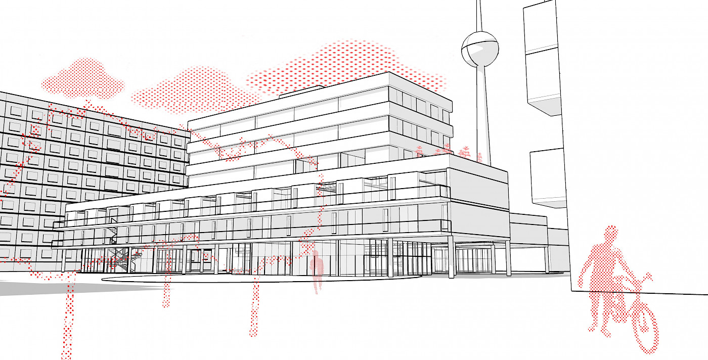 Pour explorer les potentiels de la densification et qualification urbanistique des Siedlungen modernistes de la RDA, ont été développé, à l’exemple d’un îlot au centre-ville de Berlin, des prototypes pour des immeubles d’habitation, des modules d’extension et des éléments paysagers.