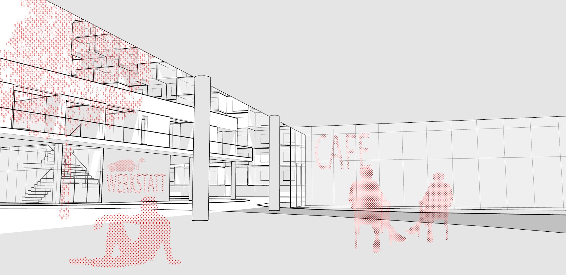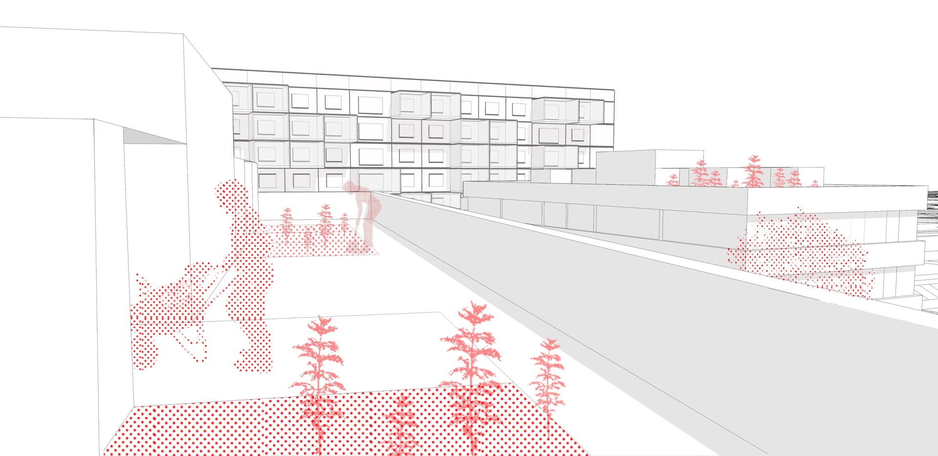 Pour explorer les potentiels de la densification et qualification urbanistique des Siedlungen modernistes de la RDA, ont été développé, à l’exemple d’un îlot au centre-ville de Berlin, des prototypes pour des immeubles d’habitation, des modules d’extension et des éléments paysagers.