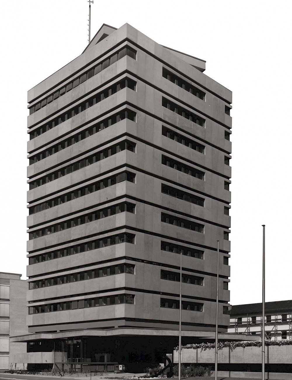 L’amélioration du bilan énergétique de cet immeuble de bureau construit dans les années 60 passe par la complémentarité des principes de performance de l’enveloppe, de maximisation des gains solaires passifs et de production d’énergie. Les allèges ont été abaissées, augmentant les surfaces de vitrage de sorte que les espaces de bureau sont non-seulement plus lumineux, mais paraissent aussi plus spacieux malgré leurs modestes surfaces. Une nouvelle toiture photovoltaïque au niveau du garage semi-enterré contribue par ailleurs activement à la bonification du bilan énergétique. Les caractéristiques fondamentales des façades d’origine, soit l’horizontalité, le contraste noir/blanc et la matérialité ont en outre été préservées.