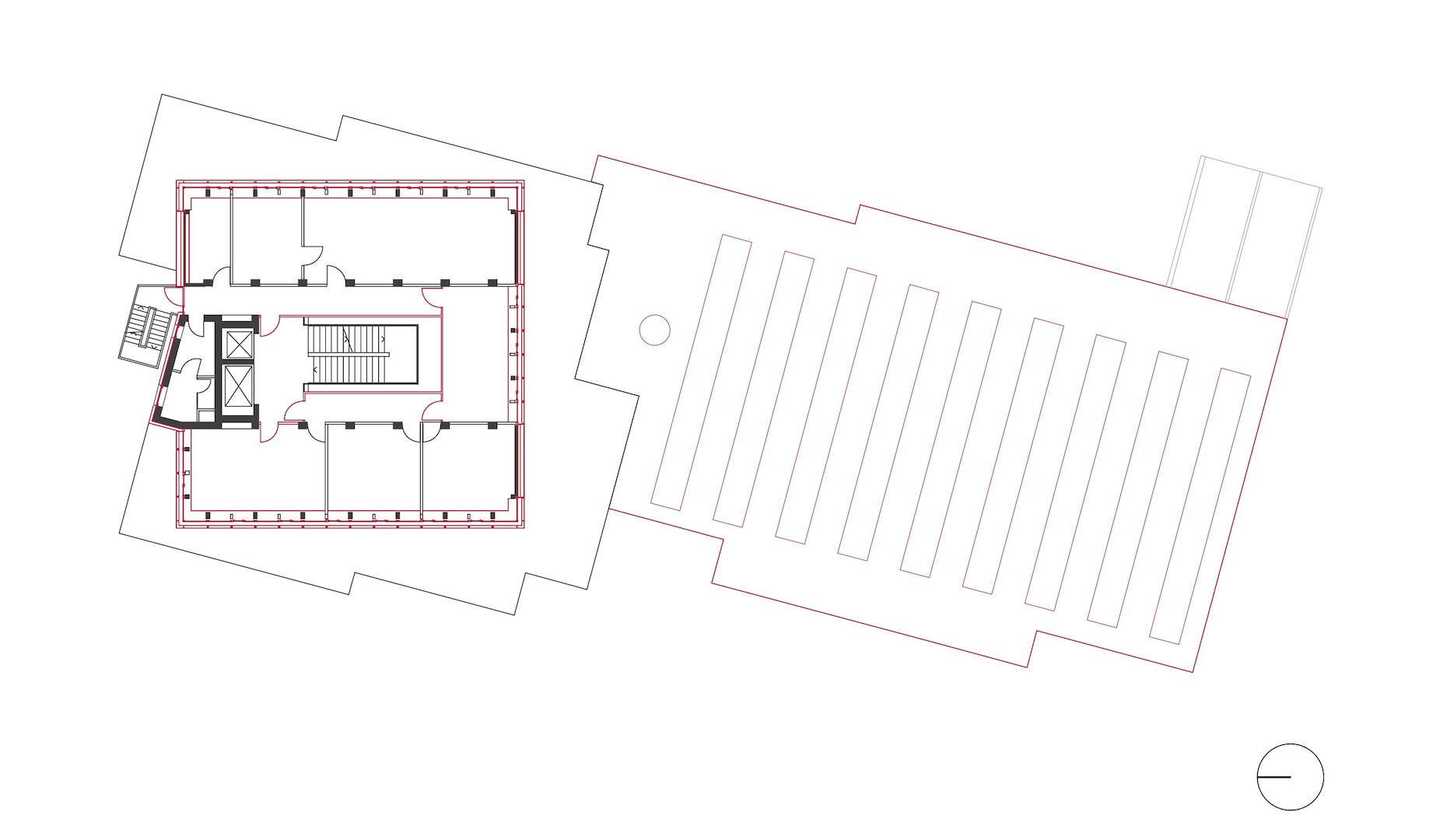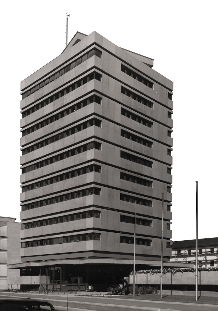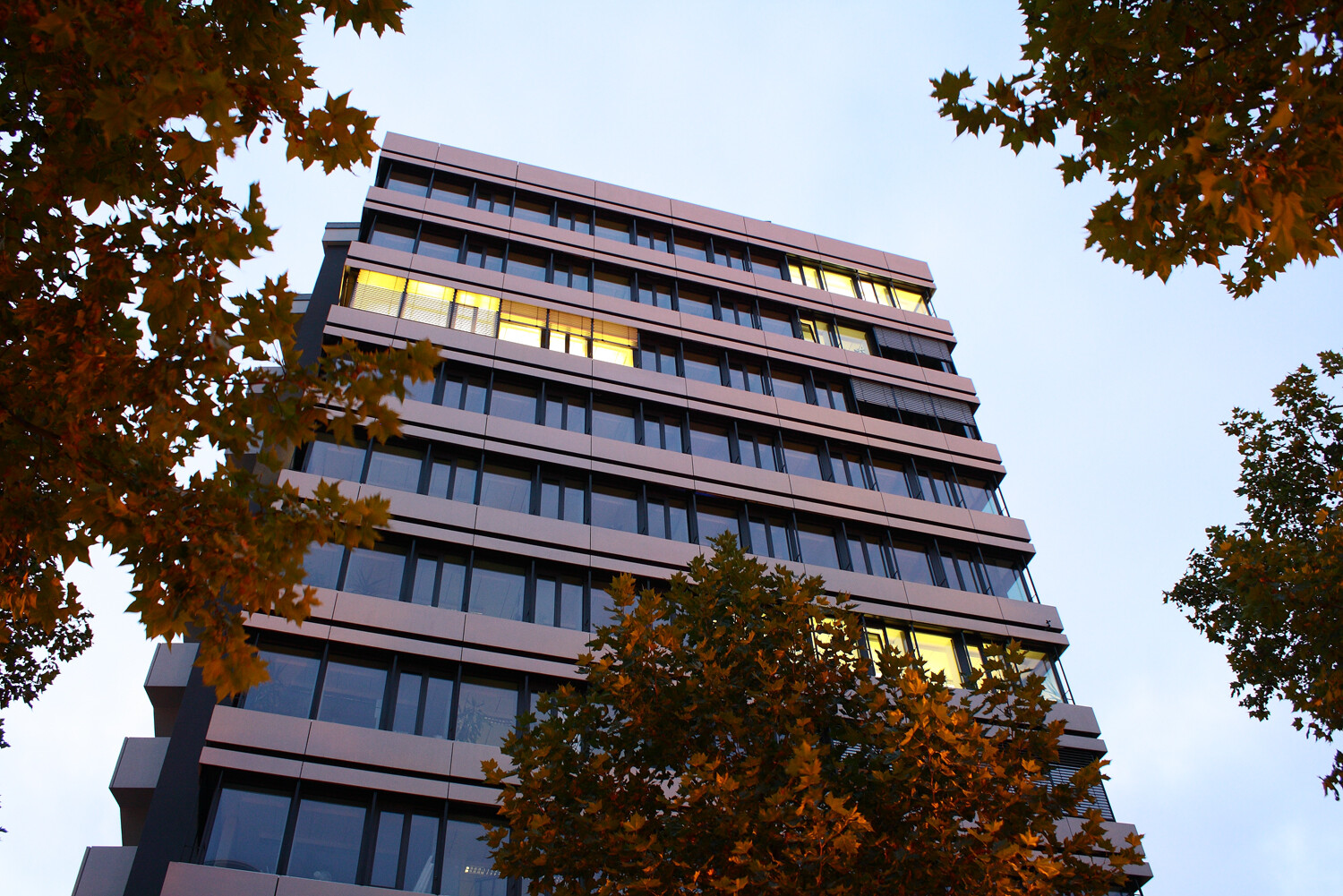 L’amélioration du bilan énergétique de cet immeuble de bureau construit dans les années 60 passe par la complémentarité des principes de performance de l’enveloppe, de maximisation des gains solaires passifs et de production d’énergie. Les allèges ont été abaissées, augmentant les surfaces de vitrage de sorte que les espaces de bureau sont non-seulement plus lumineux, mais paraissent aussi plus spacieux malgré leurs modestes surfaces. Une nouvelle toiture photovoltaïque au niveau du garage semi-enterré contribue par ailleurs activement à la bonification du bilan énergétique. Les caractéristiques fondamentales des façades d’origine, soit l’horizontalité, le contraste noir/blanc et la matérialité ont en outre été préservées.